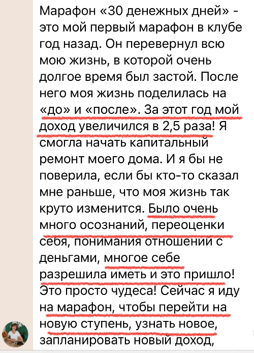 Выполнив задания и медитации марафона, вы заложите на уровень подсознания другое отношение к деньгам и новую Денежную программу!